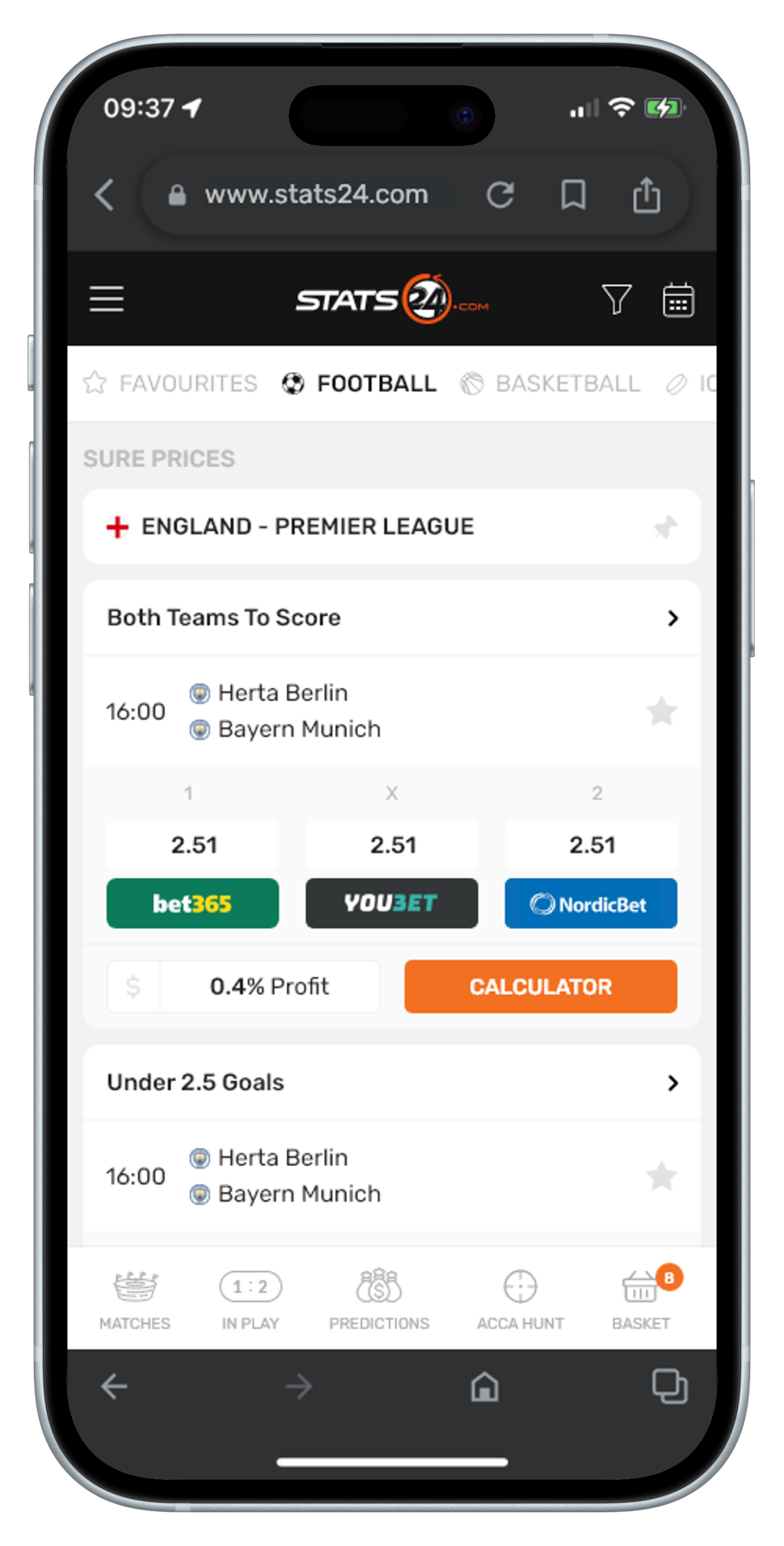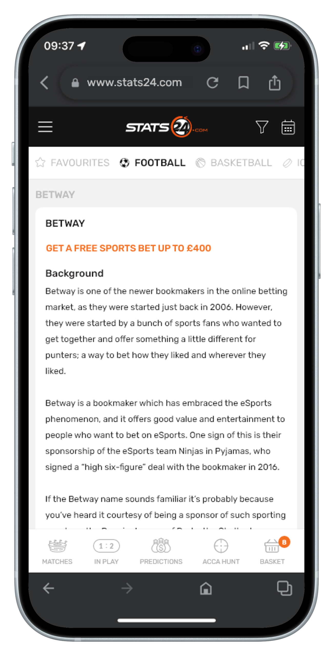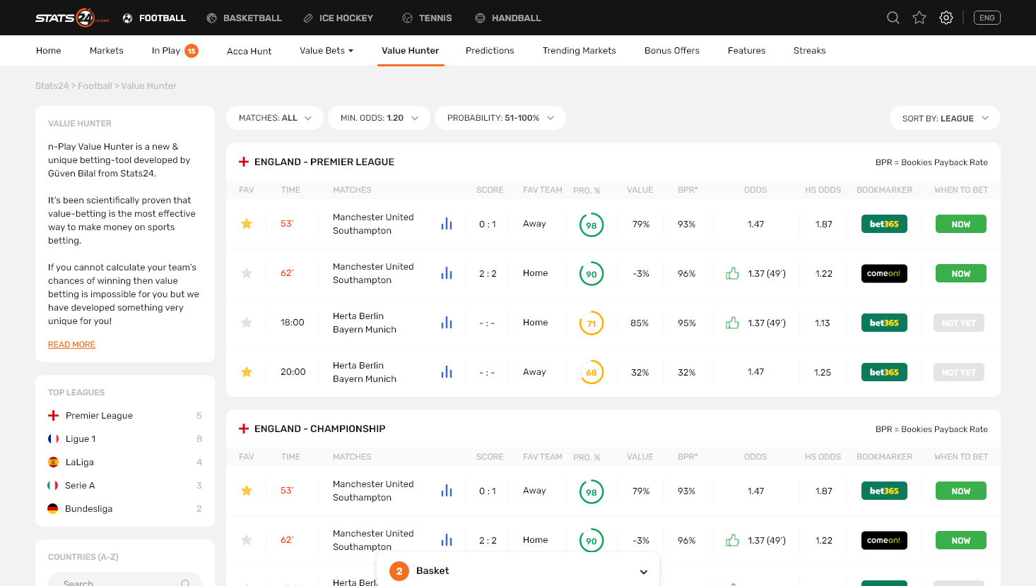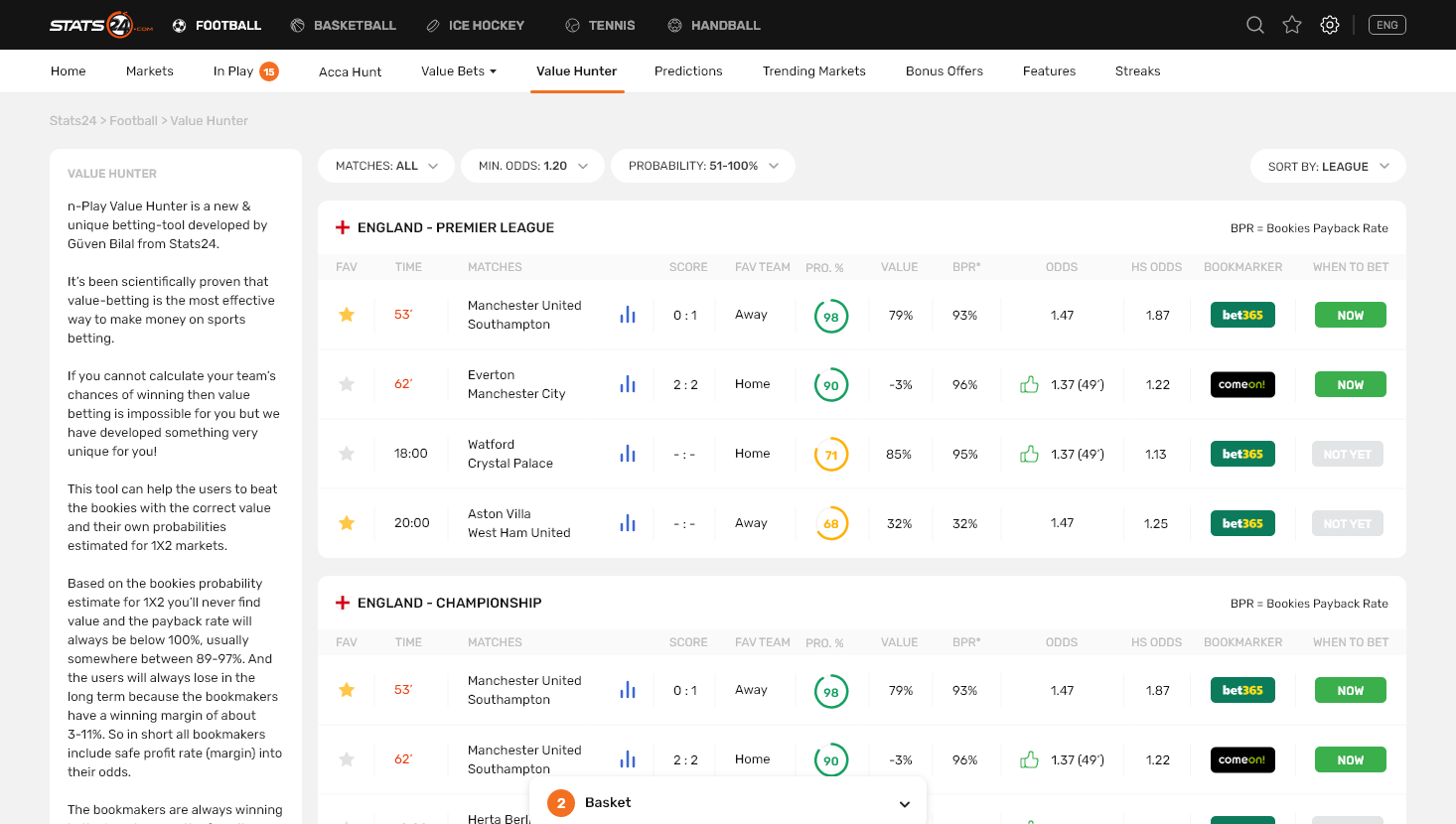 Stats24 is a website and app that gives sports stats and predictions, mainly for football, basketball, and tennis. It shows match data, win chances, and betting tips, but results aren’t guaranteed. It’s run by a Danish company called SportCC ApS.