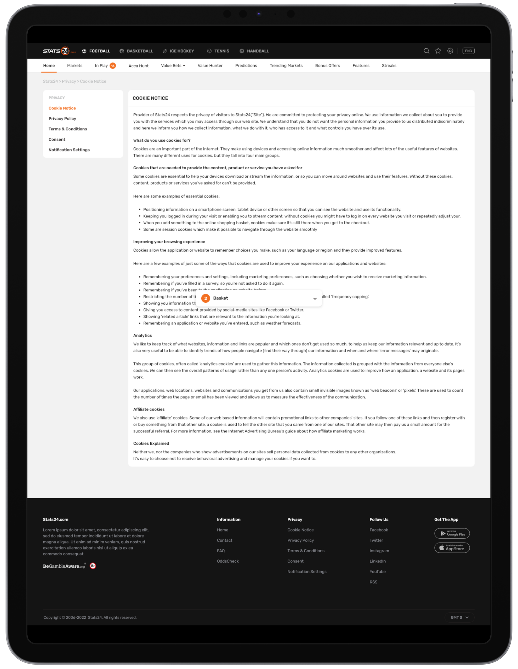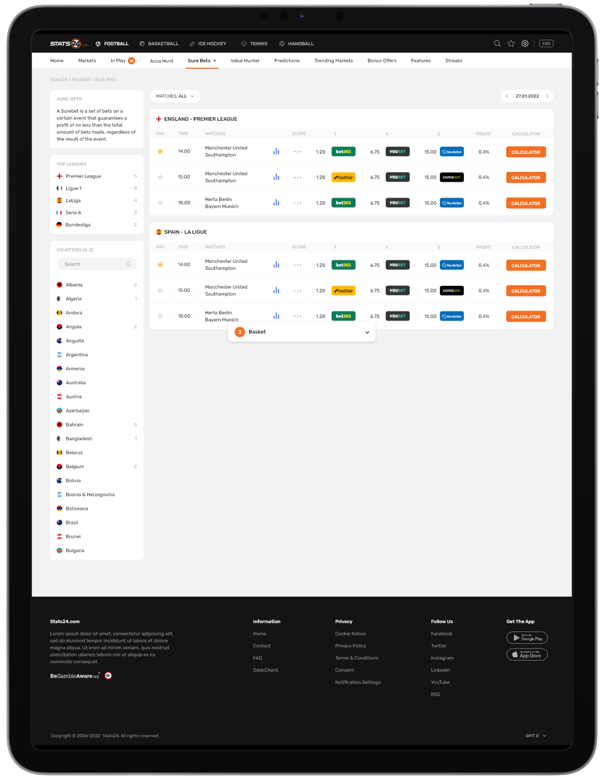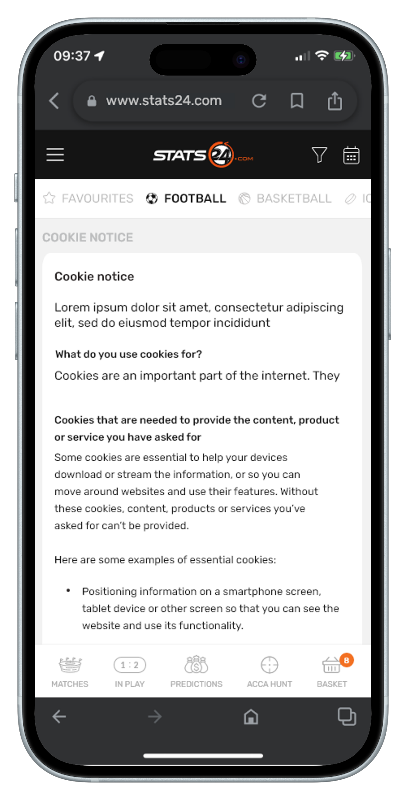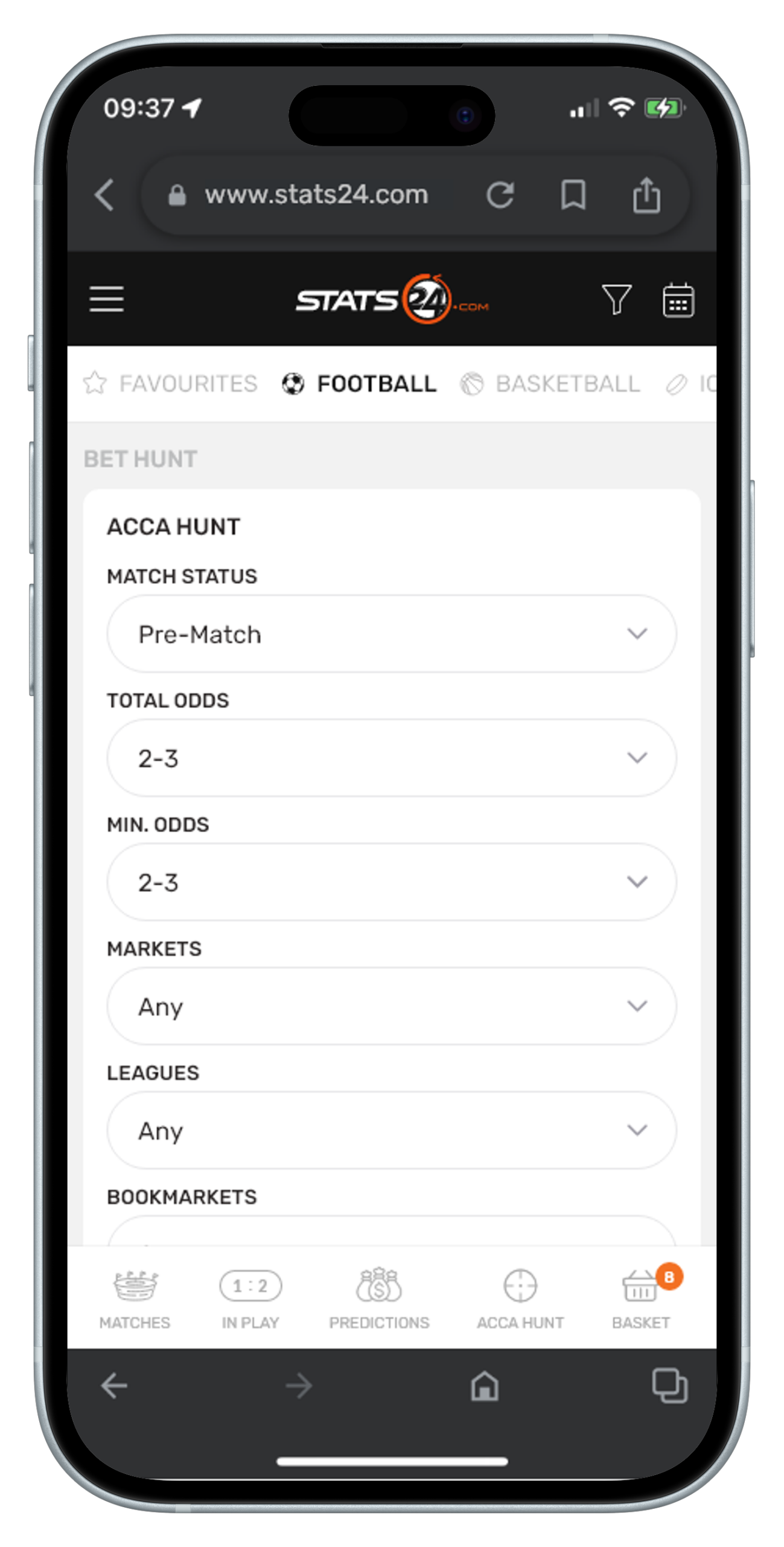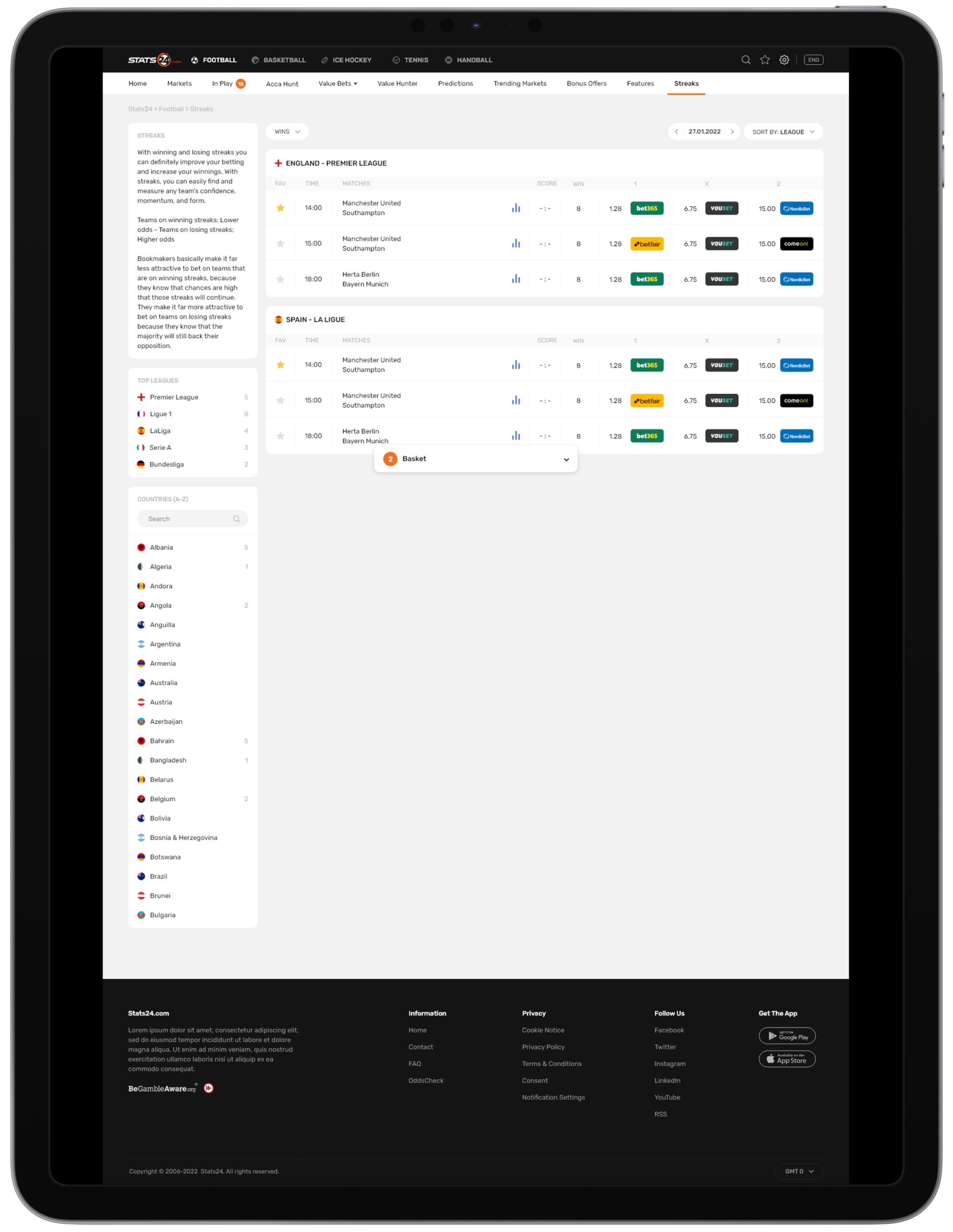 Stats24 is a website and app that gives sports stats and predictions, mainly for football, basketball, and tennis. It shows match data, win chances, and betting tips, but results aren’t guaranteed. It’s run by a Danish company called SportCC ApS.